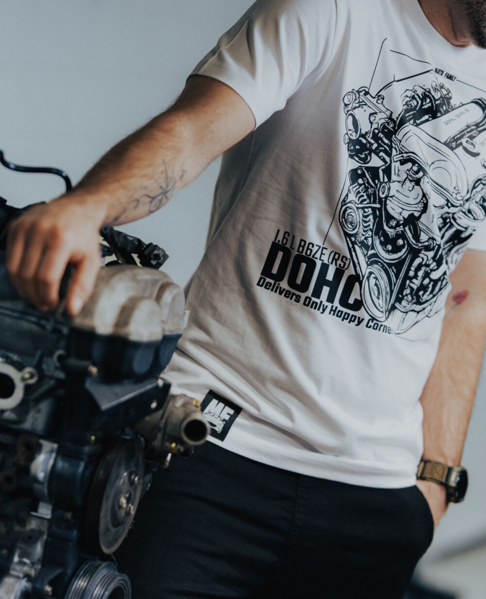Nasze wzory — i cały proces wokół nich — powstają w Polsce. Od pomysłu, przez projekt, po gotowy produkt trzymamy wszystko lokalnie, bo autentyczny klimat Mazdy MX-5 zasługuje na rzemiosło, a nie przypadkową grafikę z internetu. Inspiruje nas sylwetka roadstera, klasyczne proporcje, detale kół, estetyka toru, pop-upy (wiadomo, zasada) i to uczucie „jeszcze tylko jedna przejażdżka”.